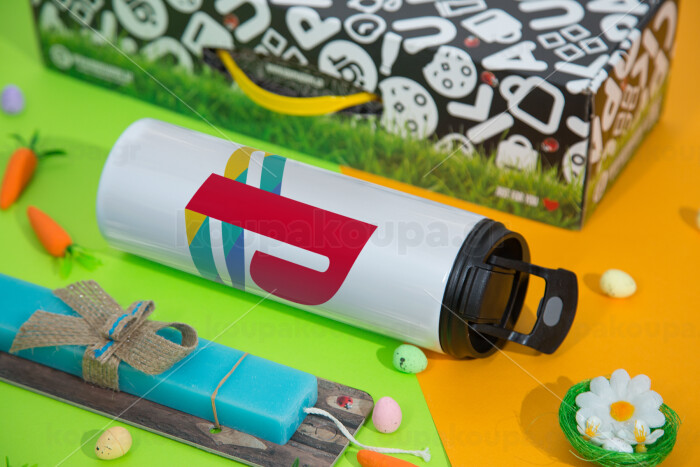 Playstation, Easter candle,Travel Tumbler 2 Lids, with metal straw & cleaning brush & aromatic flat candle (30cm) (BLUE)