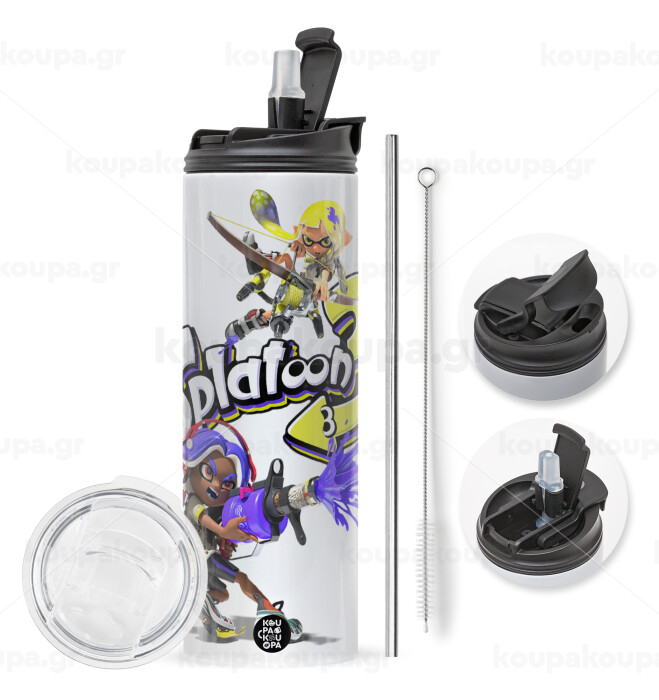 Splatoon 3, Easter candle,Travel Tumbler 2 Lids, with metal straw & cleaning brush & aromatic flat candle (30cm) (BLUE)