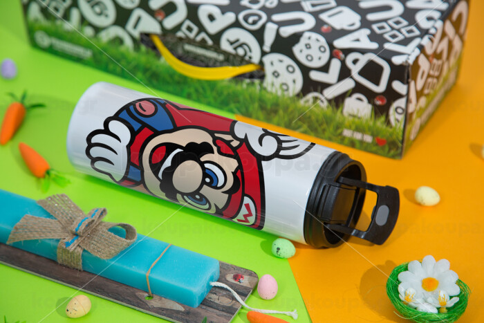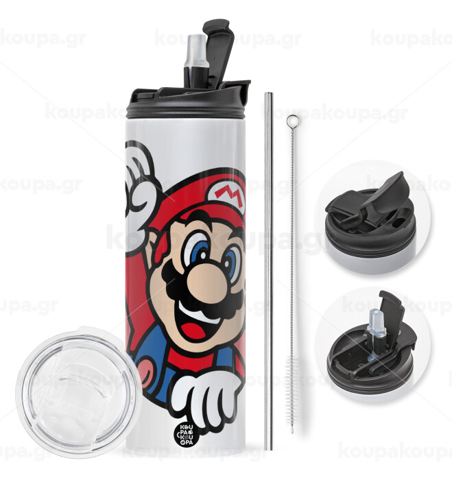 Super mario win, Easter candle,Travel Tumbler 2 Lids, with metal straw & cleaning brush & aromatic flat candle (30cm) (BLUE)