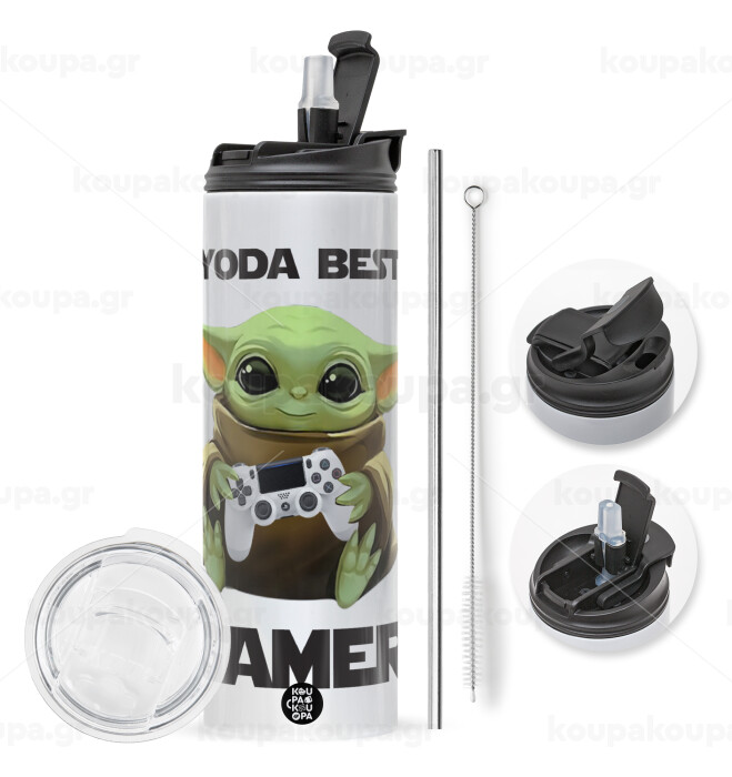 Yoda Best Gamer, Easter candle,Travel Tumbler 2 Lids, with metal straw & cleaning brush & aromatic flat candle (30cm) (BLUE)