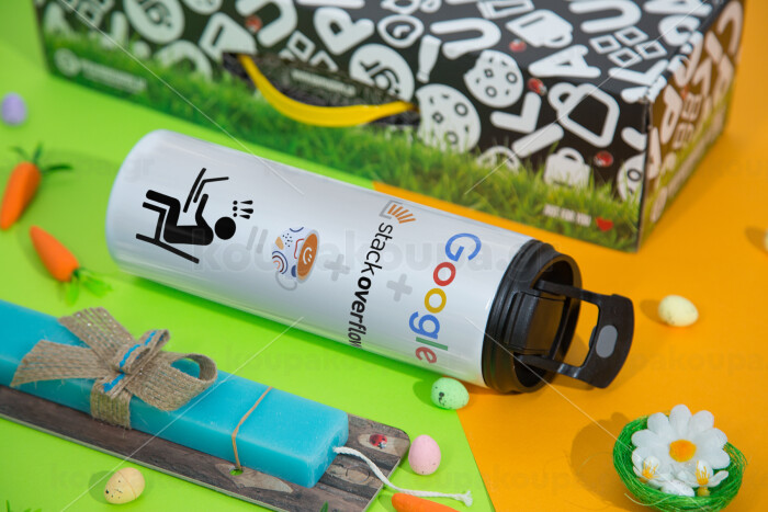 Google + Stack overflow + Coffee, Easter candle,Travel Tumbler 2 Lids, with metal straw & cleaning brush & aromatic flat candle (30cm) (BLUE)