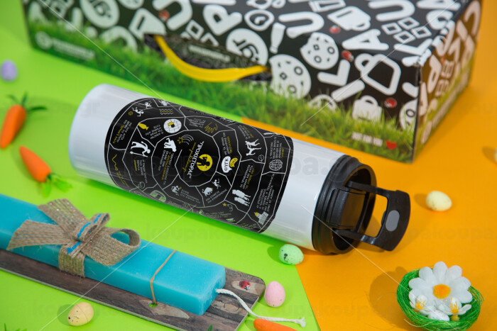Προχίστορας, Easter candle,Travel Tumbler 2 Lids, with metal straw & cleaning brush & aromatic flat candle (30cm) (BLUE)