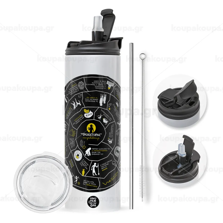 Eco friendly hot glass 600ml with metal reusable straw. Enjoy your favorite drink at any moment in this unique ecological thermos. It maintains the temperature for several hours and is made of stainless steel. Suitable for hot and cold drinks. Comes with a cleaning brush for the straw.