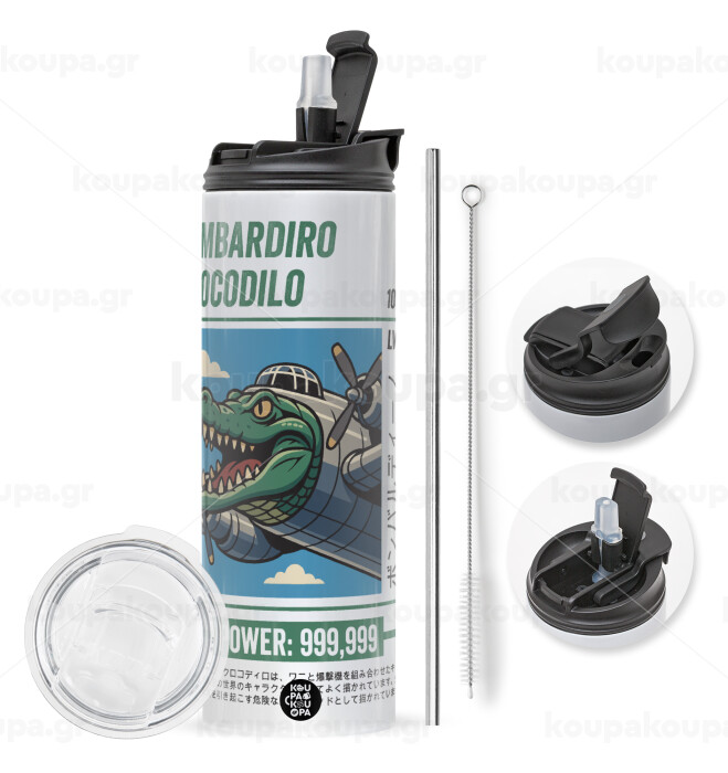 Bombardiro Crocodilo, Easter candle,Travel Tumbler 2 Lids, with metal straw & cleaning brush & aromatic flat candle (30cm) (BLUE)