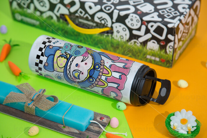 Labubu Stitch, Easter candle,Travel Tumbler 2 Lids, with metal straw & cleaning brush & aromatic flat candle (30cm) (BLUE)