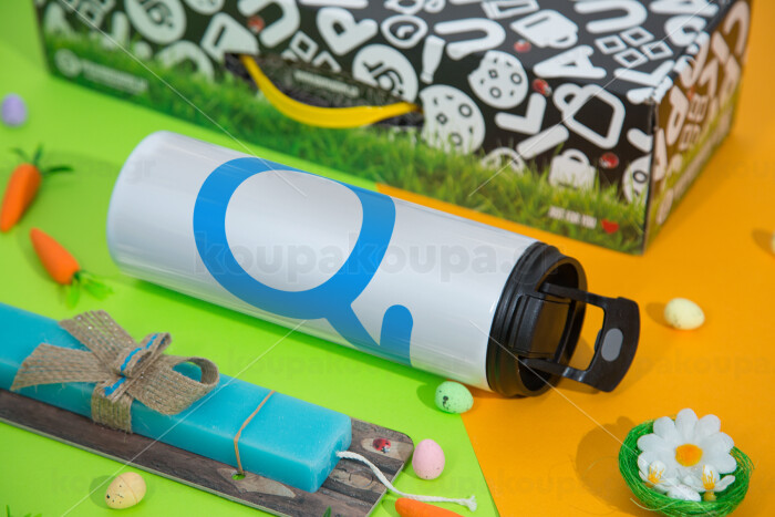 MALE, Easter candle,Travel Tumbler 2 Lids, with metal straw & cleaning brush & aromatic flat candle (30cm) (BLUE)