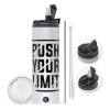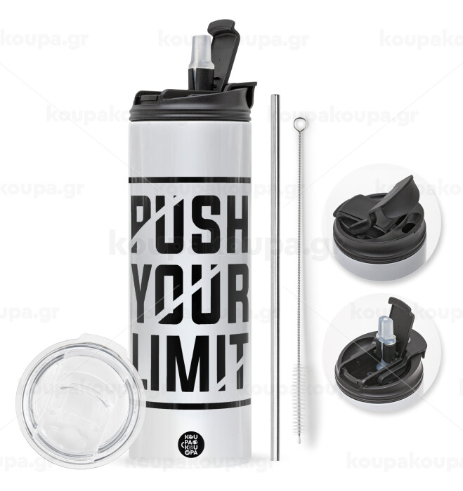 Push your limit, Easter candle,Travel Tumbler 2 Lids, with metal straw & cleaning brush & aromatic flat candle (30cm) (BLUE)