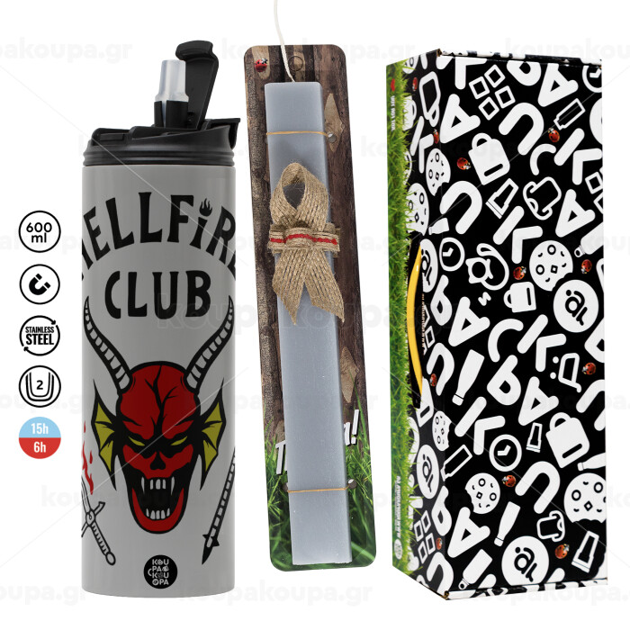 Hellfire CLub, Stranger Things, Easter candle with Grey Tumbler Thermo 600ml & aromatic flat candle (30cm) (GREY)
