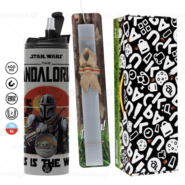 Mandalorian, Easter candle with Grey Tumbler Thermo 600ml & aromatic flat candle (30cm) (GREY)