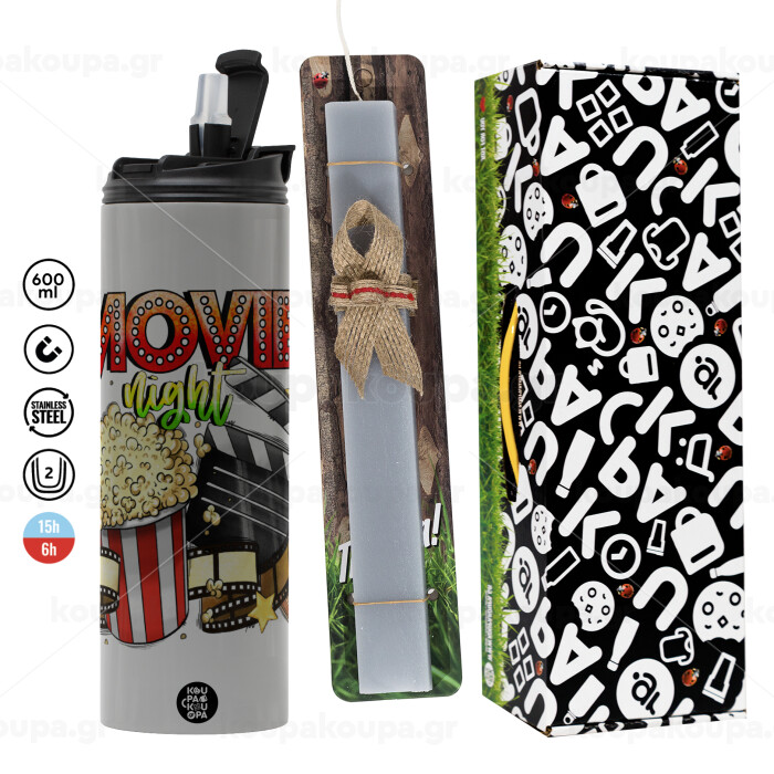 Movie night, Easter candle with Grey Tumbler Thermo 600ml & aromatic flat candle (30cm) (GREY)