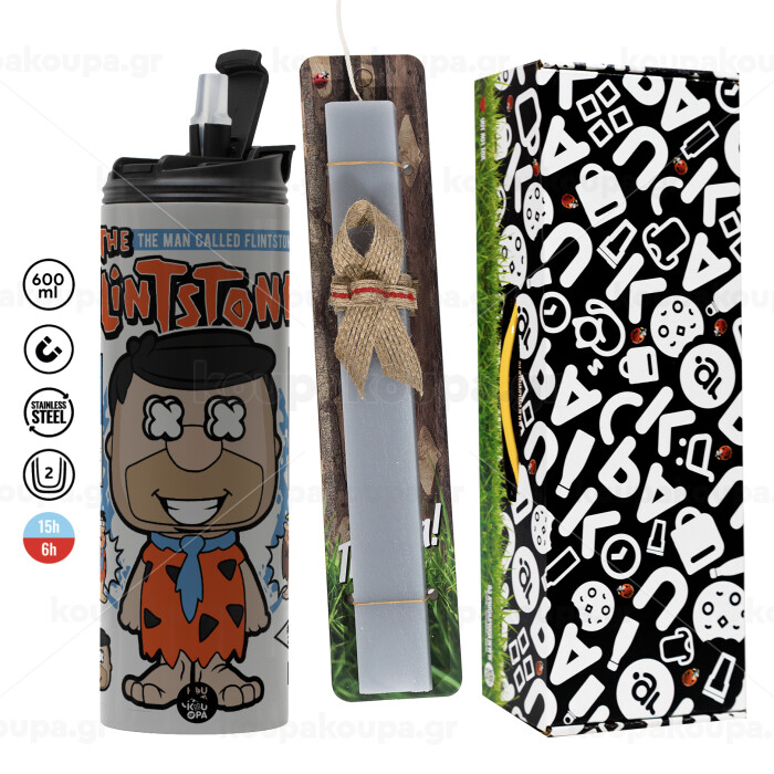 The flintstones, Easter candle with Grey Tumbler Thermo 600ml & aromatic flat candle (30cm) (GREY)