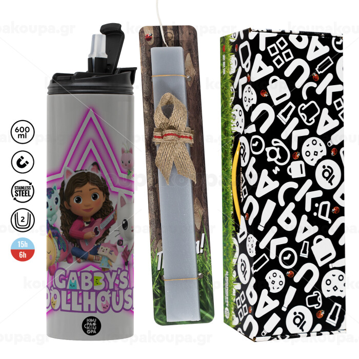 Gabby Dollhouse, Easter candle with Grey Tumbler Thermo 600ml & aromatic flat candle (30cm) (GREY)