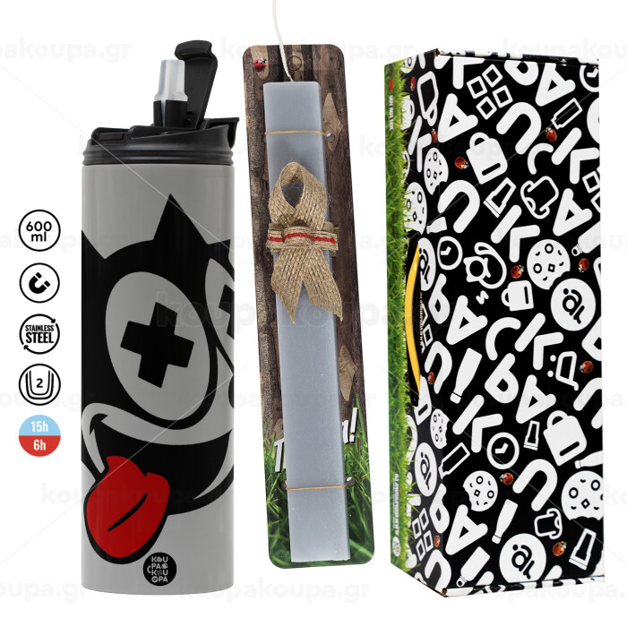 helix the cat, Easter candle with Grey Tumbler Thermo 600ml & aromatic flat candle (30cm) (GREY)