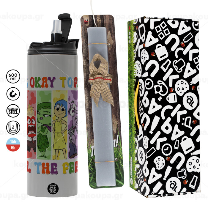 Inside Out It's Okay To Feel All The Feels , Easter candle with Grey Tumbler Thermo 600ml & aromatic flat candle (30cm) (GREY)