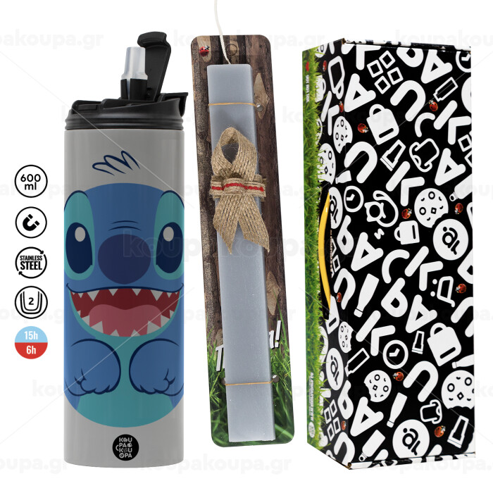 Lilo & Stitch blue, Easter candle with Grey Tumbler Thermo 600ml & aromatic flat candle (30cm) (GREY)
