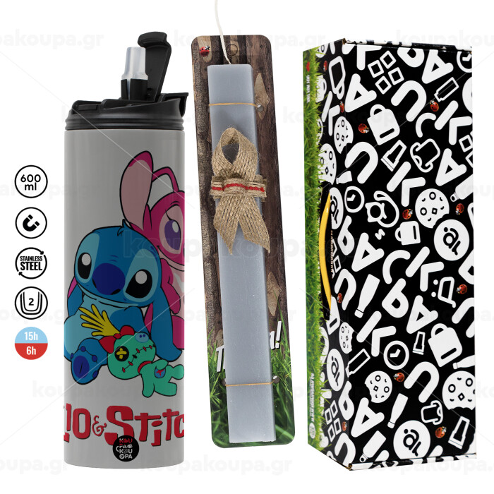 Lilo & Stitch, Easter candle with Grey Tumbler Thermo 600ml & aromatic flat candle (30cm) (GREY)