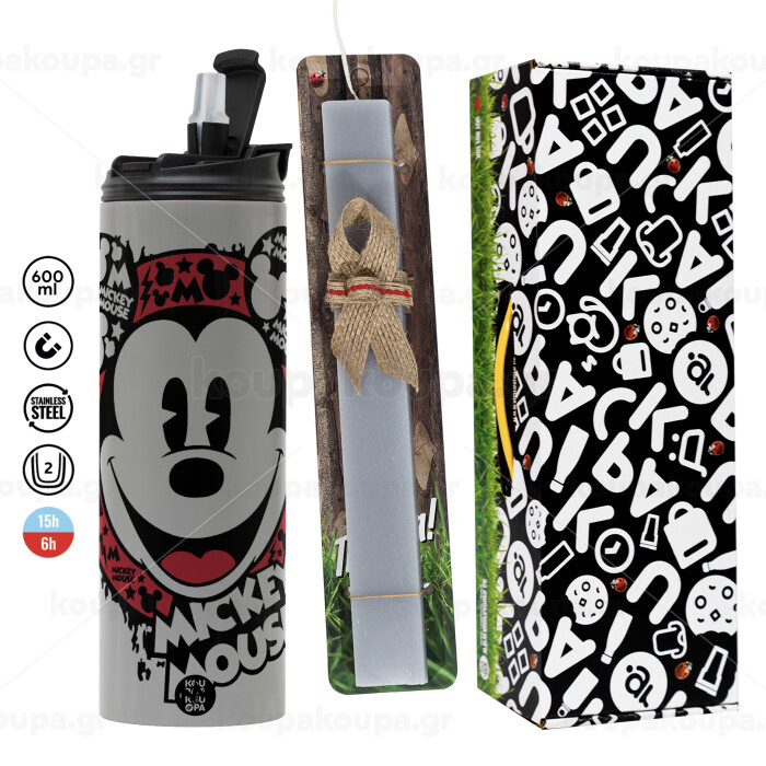 Mickey Mouse, Easter candle with Grey Tumbler Thermo 600ml & aromatic flat candle (30cm) (GREY)