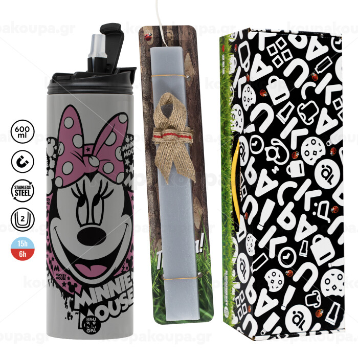 Minnie mouse, Easter candle with Grey Tumbler Thermo 600ml & aromatic flat candle (30cm) (GREY)