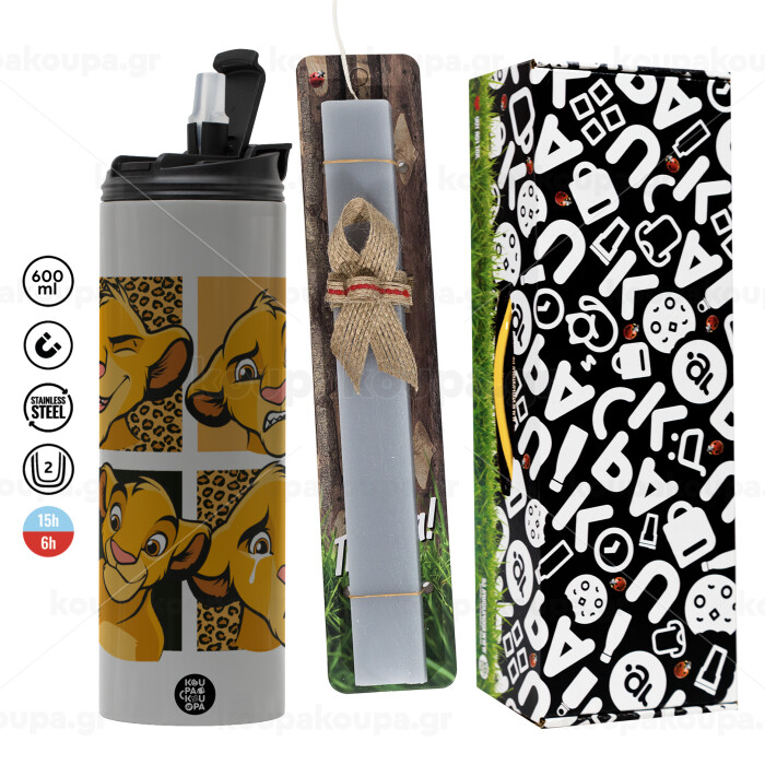 Simba, lion king, Easter candle with Grey Tumbler Thermo 600ml & aromatic flat candle (30cm) (GREY)