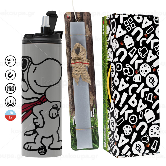 Snoopy ο πιλότος, Easter candle with Grey Tumbler Thermo 600ml & aromatic flat candle (30cm) (GREY)