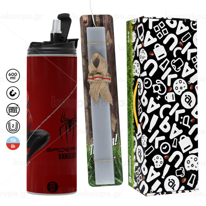 Spiderman, Easter candle with Grey Tumbler Thermo 600ml & aromatic flat candle (30cm) (GREY)