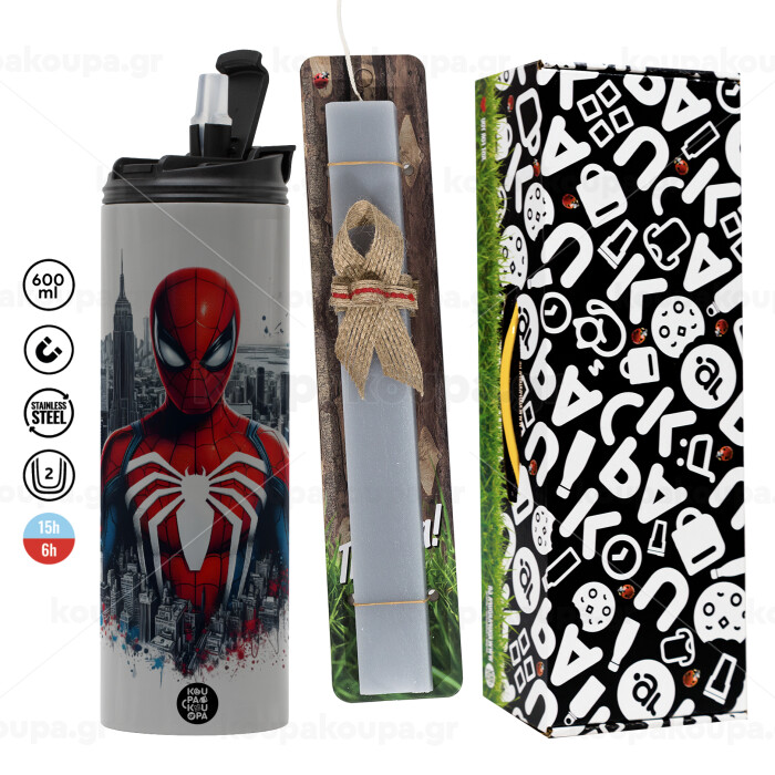 Spiderman City, Easter candle with Grey Tumbler Thermo 600ml & aromatic flat candle (30cm) (GREY)