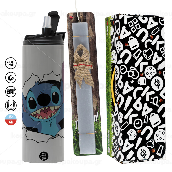 Stitch hello!!!, Easter candle with Grey Tumbler Thermo 600ml & aromatic flat candle (30cm) (GREY)