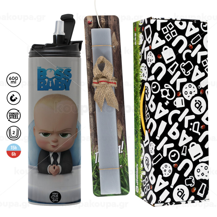 The boss baby, Easter candle with Grey Tumbler Thermo 600ml & aromatic flat candle (30cm) (GREY)