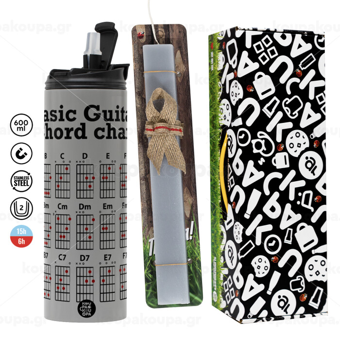 Guitar tabs, Easter candle with Grey Tumbler Thermo 600ml & aromatic flat candle (30cm) (GREY)