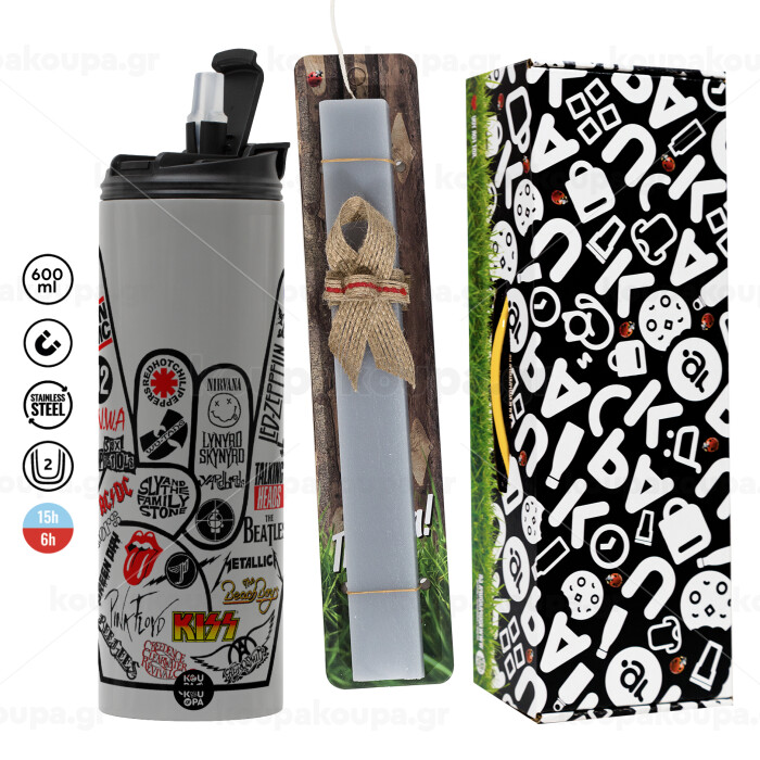 Best Rock Bands hand, Easter candle with Grey Tumbler Thermo 600ml & aromatic flat candle (30cm) (GREY)