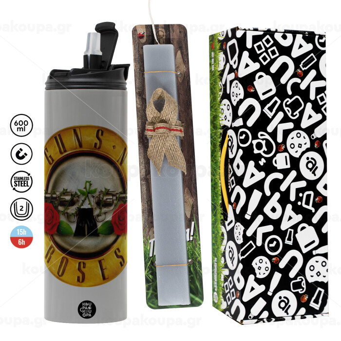 Guns N' Roses, Easter candle with Grey Tumbler Thermo 600ml & aromatic flat candle (30cm) (GREY)
