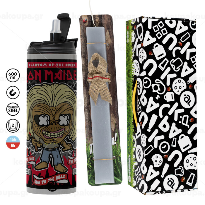 Iron maiden (eddie), Easter candle with Grey Tumbler Thermo 600ml & aromatic flat candle (30cm) (GREY)