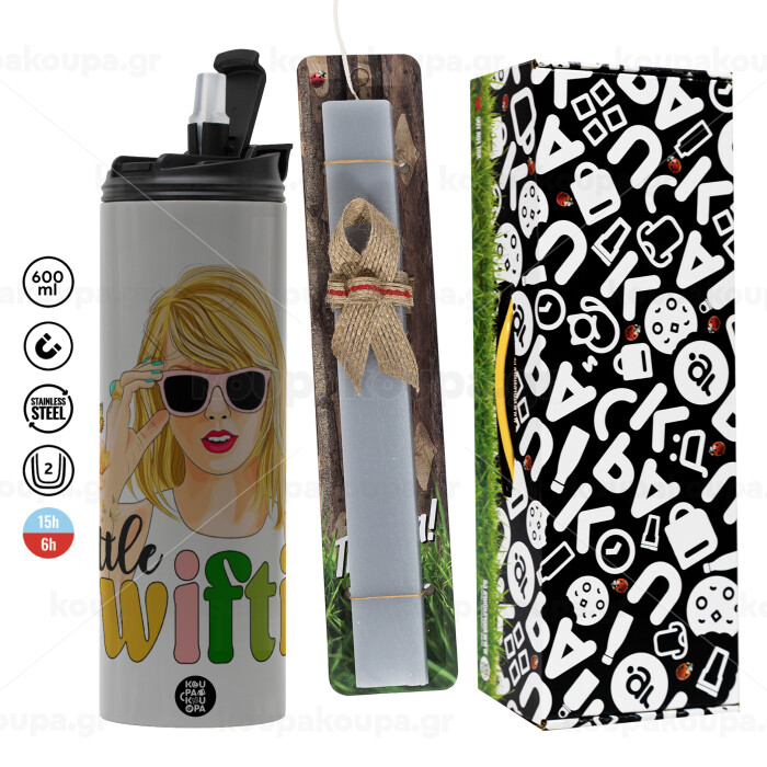 Little Swiftie, Easter candle with Grey Tumbler Thermo 600ml & aromatic flat candle (30cm) (GREY)