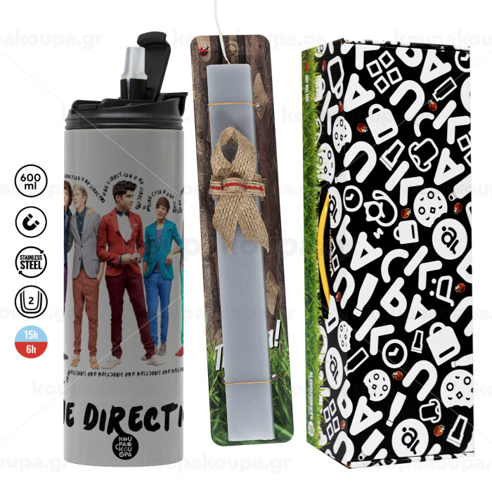 One Direction , Easter candle with Grey Tumbler Thermo 600ml & aromatic flat candle (30cm) (GREY)
