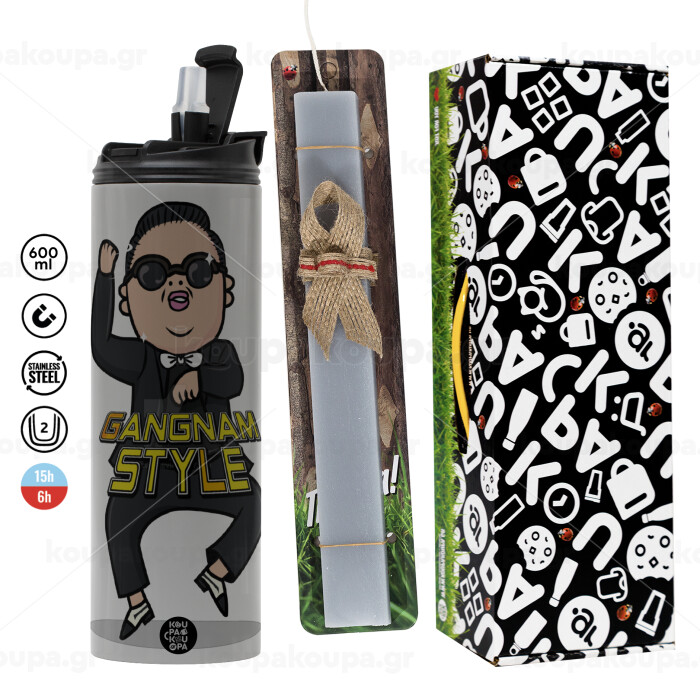 PSY - GANGNAM STYLE, Easter candle with Grey Tumbler Thermo 600ml & aromatic flat candle (30cm) (GREY)