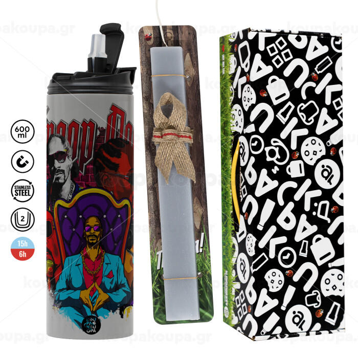 Snoop Dogg, Easter candle with Grey Tumbler Thermo 600ml & aromatic flat candle (30cm) (GREY)
