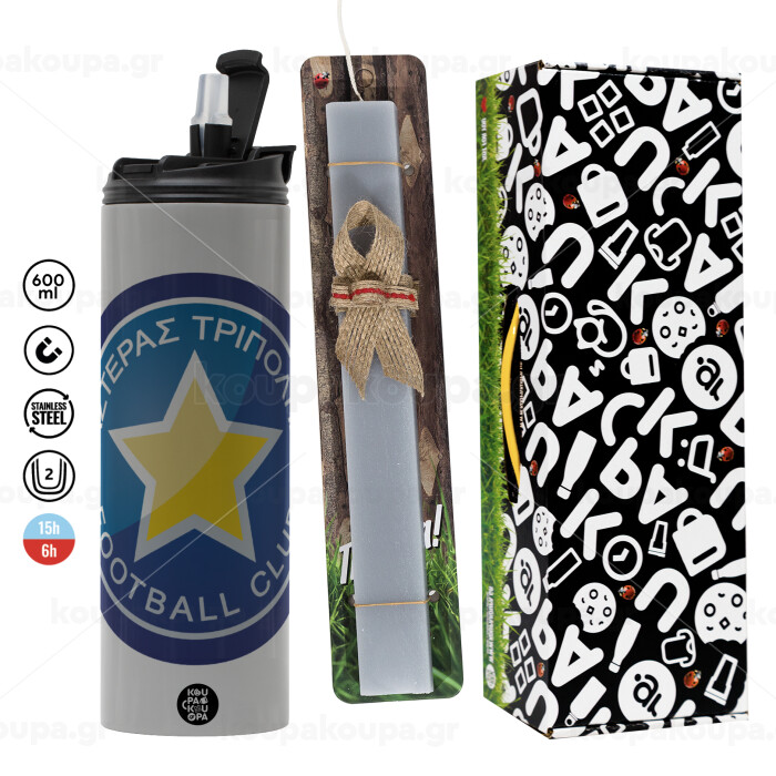 Asteras Tripolis, Easter candle with Grey Tumbler Thermo 600ml & aromatic flat candle (30cm) (GREY)