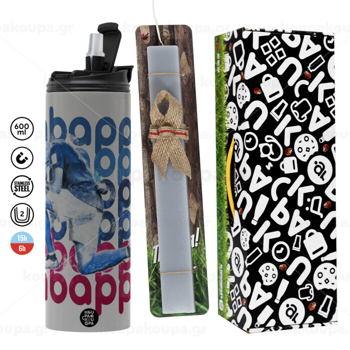 Kylian Mbappé, Easter candle with Grey Tumbler Thermo 600ml & aromatic flat candle (30cm) (GREY)