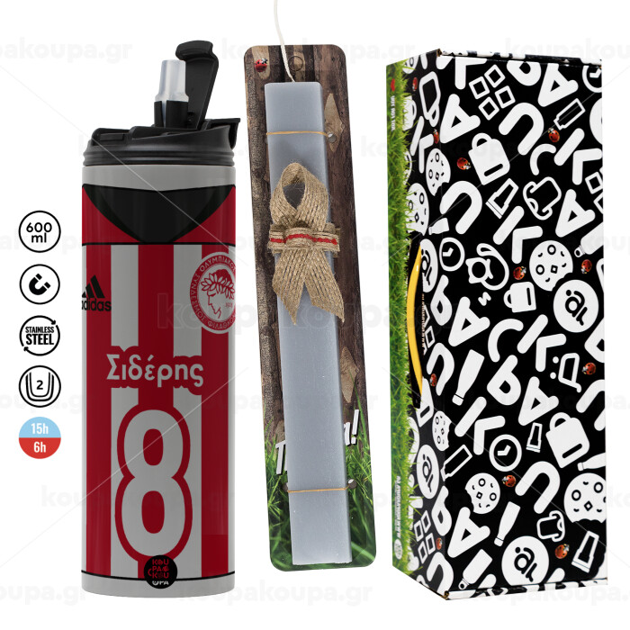 Ολυμπιακός εμφάνιση, Easter candle with Grey Tumbler Thermo 600ml & aromatic flat candle (30cm) (GREY)