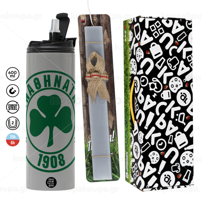 ΠΑΟ Παναθηναϊκός, Easter candle with Grey Tumbler Thermo 600ml & aromatic flat candle (30cm) (GREY)