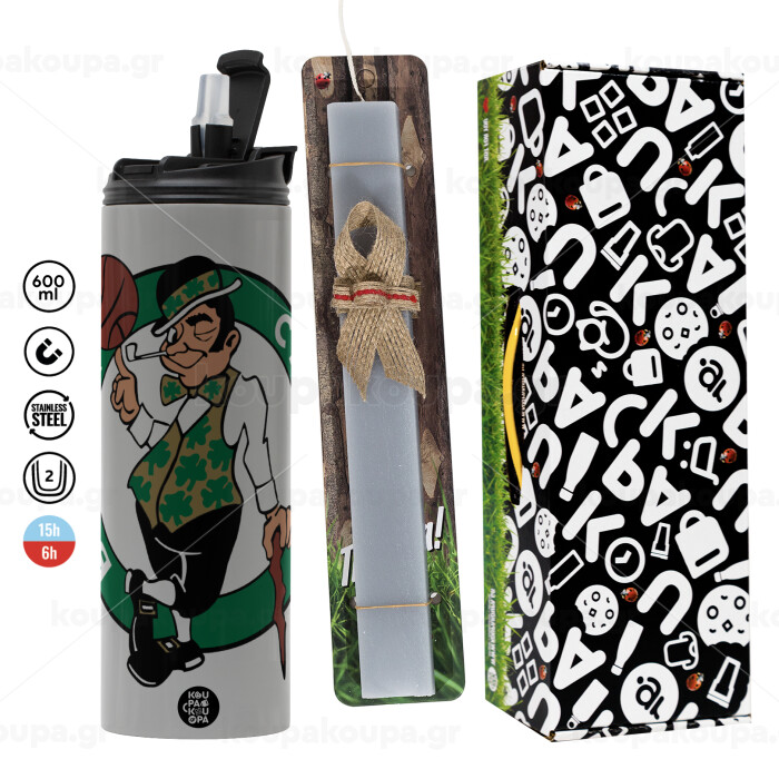 Boston Celtics, Easter candle with Grey Tumbler Thermo 600ml & aromatic flat candle (30cm) (GREY)