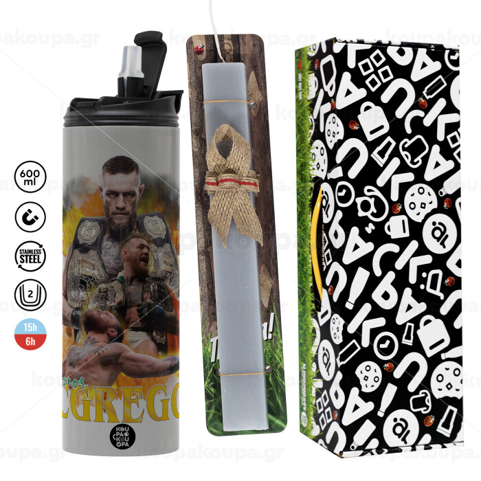 Conor McGregor Notorious, Easter candle with Grey Tumbler Thermo 600ml & aromatic flat candle (30cm) (GREY)