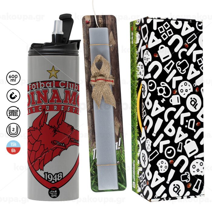 FC Dinamo Bucuresti, Easter candle with Grey Tumbler Thermo 600ml & aromatic flat candle (30cm) (GREY)