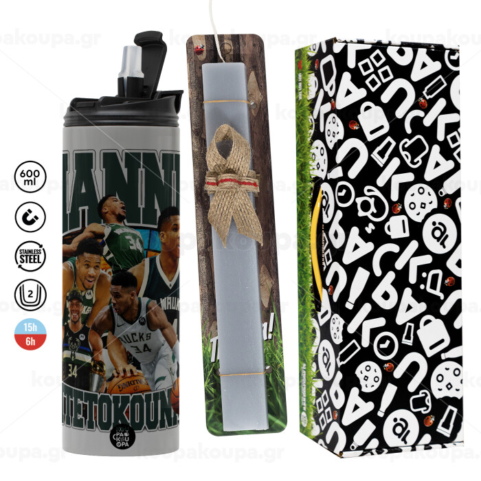 Giannis Antetokounmpo, Easter candle with Grey Tumbler Thermo 600ml & aromatic flat candle (30cm) (GREY)