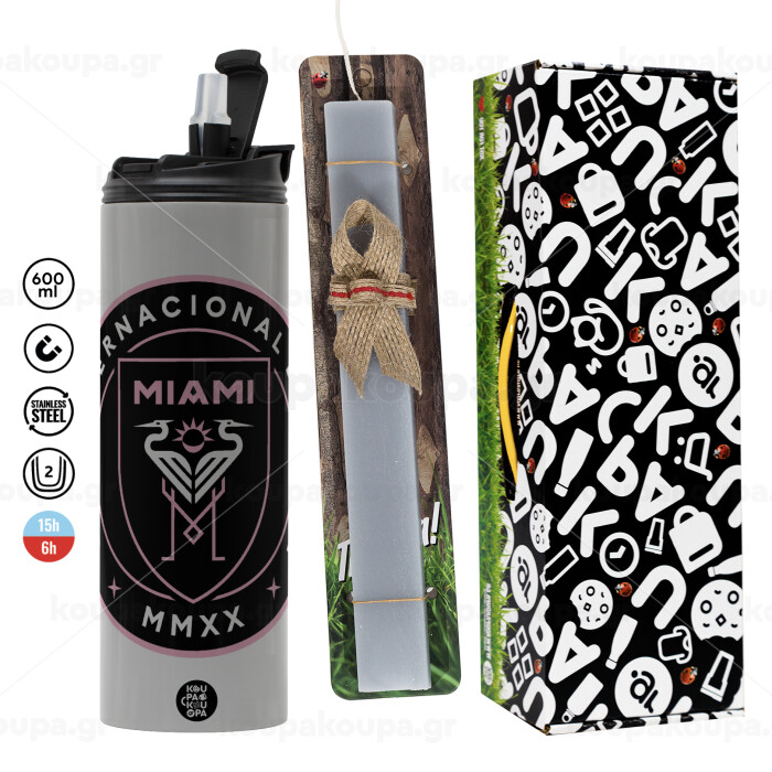 Inter Miami CF, Easter candle with Grey Tumbler Thermo 600ml & aromatic flat candle (30cm) (GREY)