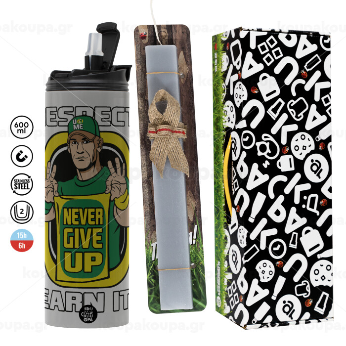 John Cena, Easter candle with Grey Tumbler Thermo 600ml & aromatic flat candle (30cm) (GREY)