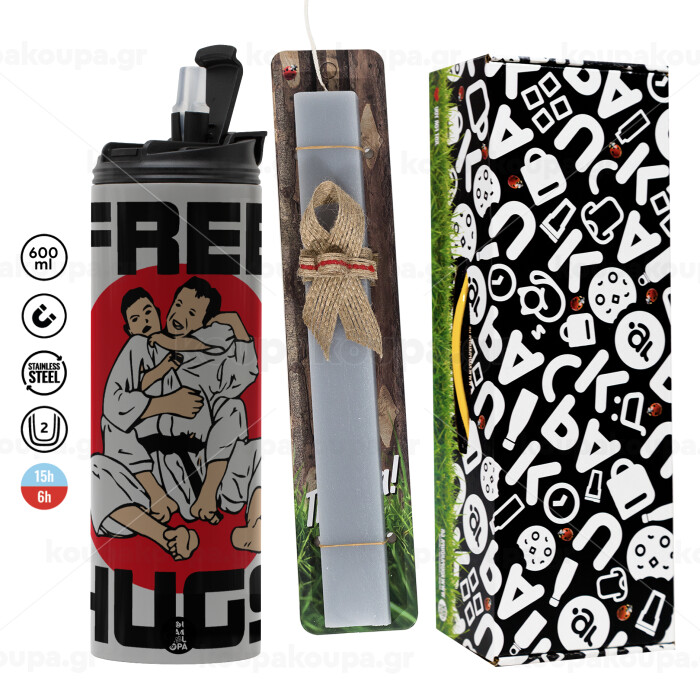 JUDO free hugs, Easter candle with Grey Tumbler Thermo 600ml & aromatic flat candle (30cm) (GREY)