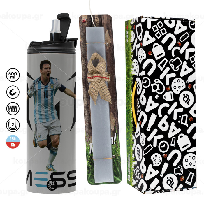 Lionel Messi, Easter candle with Grey Tumbler Thermo 600ml & aromatic flat candle (30cm) (GREY)