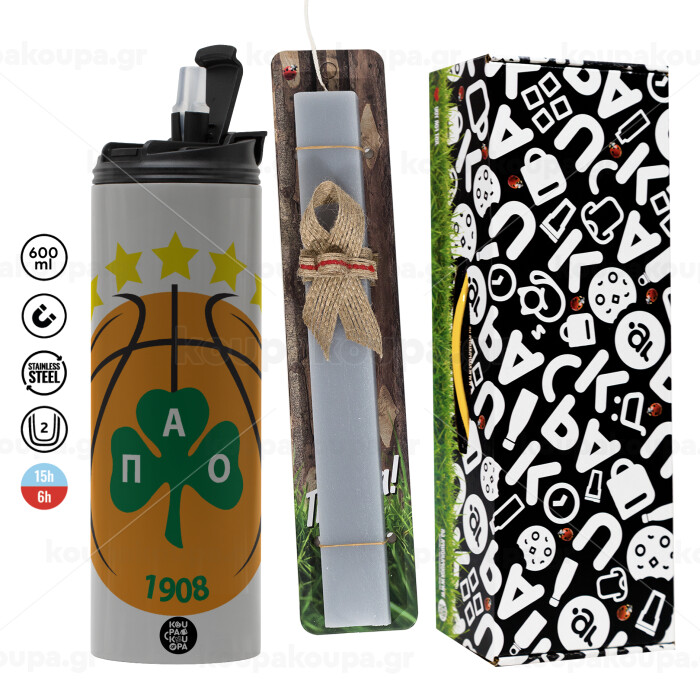 PAO BC, Easter candle with Grey Tumbler Thermo 600ml & aromatic flat candle (30cm) (GREY)