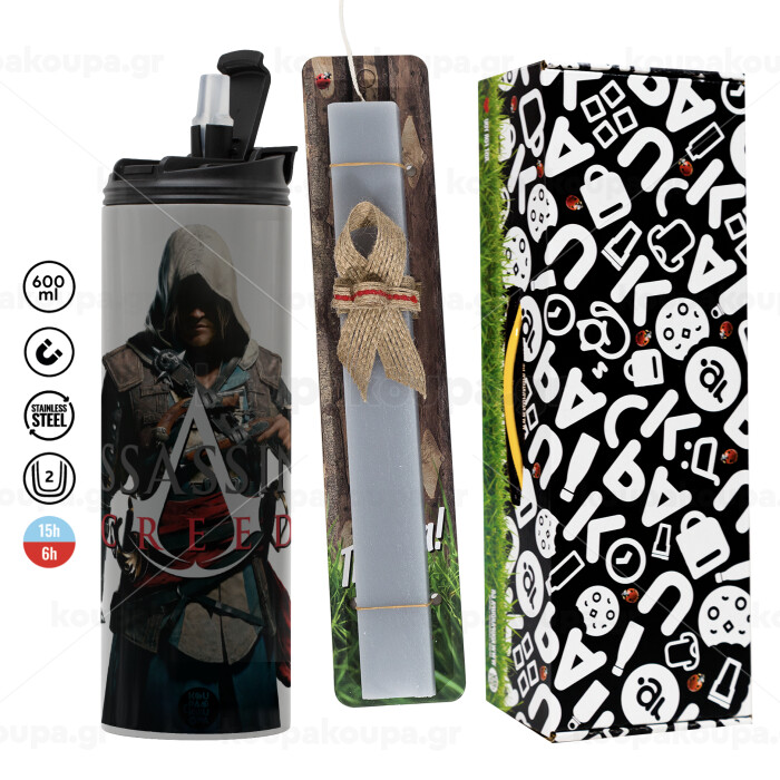Assassin's Creed, Easter candle with Grey Tumbler Thermo 600ml & aromatic flat candle (30cm) (GREY)